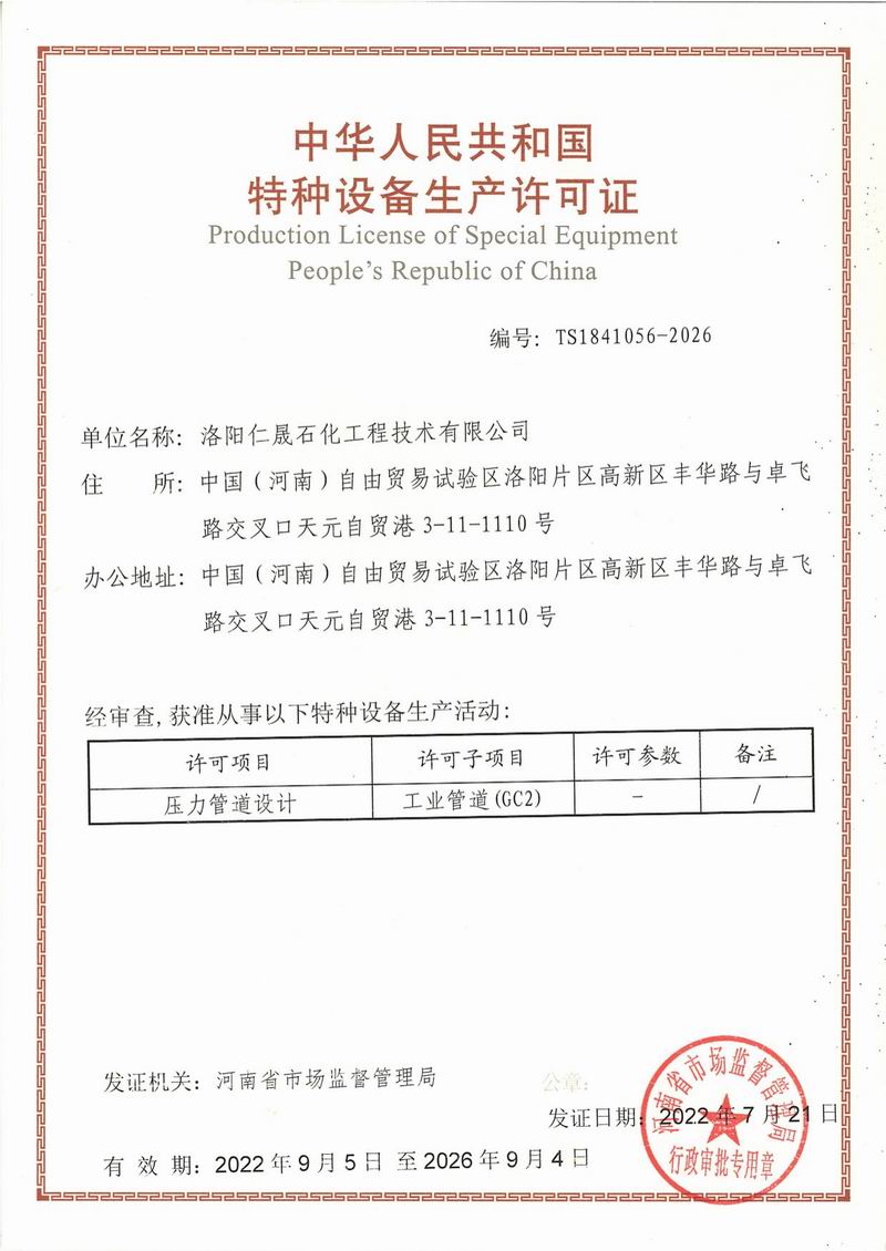 压力管道设计许可证